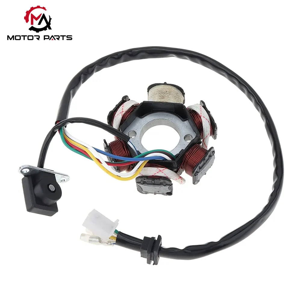 The magneto coil is the core component of the motorcycle power generation system, which, together with the magnetic steel (installed on the crankshaft), forms the magnetic motor. It is responsible for generating alternating current when the engine is running, supplying power to the vehicle's electrical system (such as the igniter and dashboard) and charging the battery. At the same time, it provides basic electrical energy for the ignition system (some models' magneto coils include ignition coils, directly providing low-voltage power to the high-voltage pack). It is one of the "energy sources" of the ignition system - if the magneto coil fails, the battery cannot be charged, and the ignition system will eventually become inoperable due to the depletion of power.