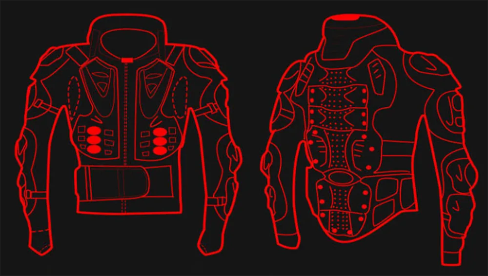 मोटरसाइकिल राइडिंग अपर बॉडी आर्मर एक एकीकृत सुरक्षा प्रणाली के लिए साइक्लिंग परिधान के साथ सीधे जुड़ने के लिए सीमलेस जिपर इंटरफेस से सुसज्जित है। राइडिंग दस्ताने और पैंट के सुरक्षा क्षेत्रों से मेल खाने के लिए संयुक्त प्लेटों को संरचनात्मक रूप से संरेखित किया गया है।