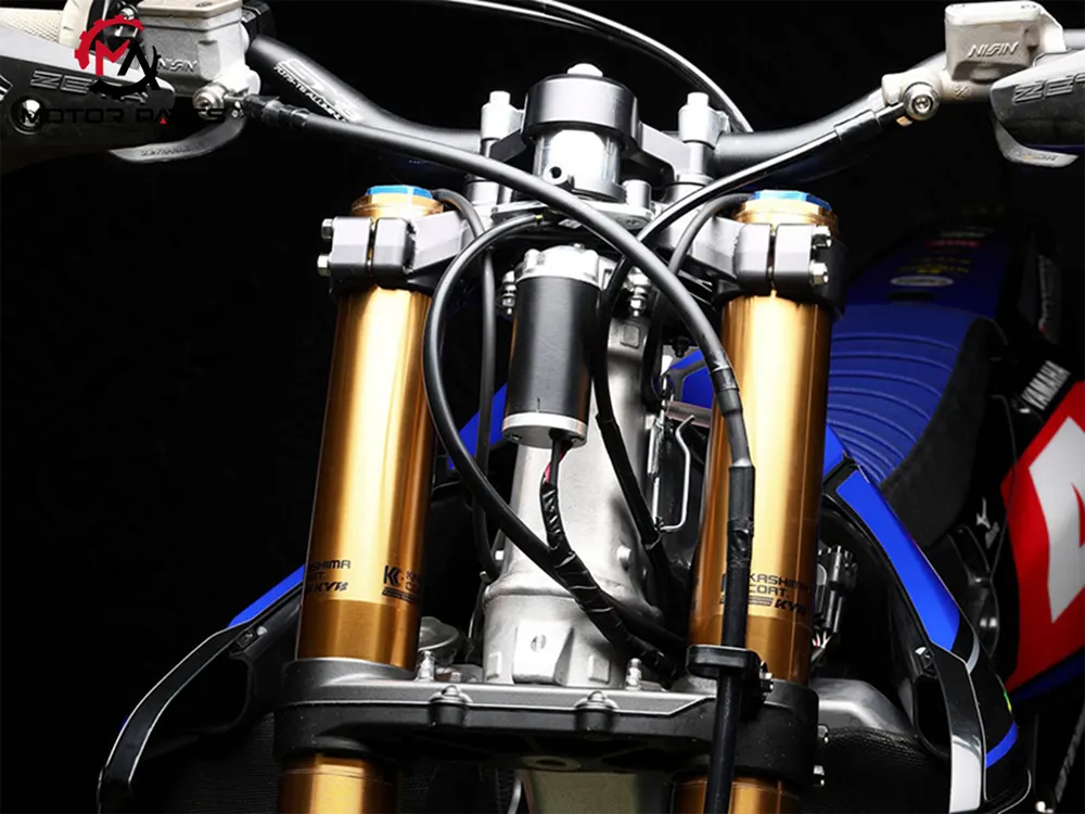 There are two front fork mounting holes at the bottom of the upper board (with a spacing matching the diameter of the front fork). The top of the front fork is fixed with high-strength bolts (torque value 25-35N · m) to ensure that the left and right front forks are parallel and perpendicular to the ground (installation error ≤ 0.3 °). Some high-end car models (such as sports streetcars and race cars) have an integrated front fork preload adjustment knob installation position on the upper board, which can directly adjust the pre tension of the front fork spring through the motorcycle upper board, adapting to different load or road conditions without disassembling other components, improving maintenance convenience.