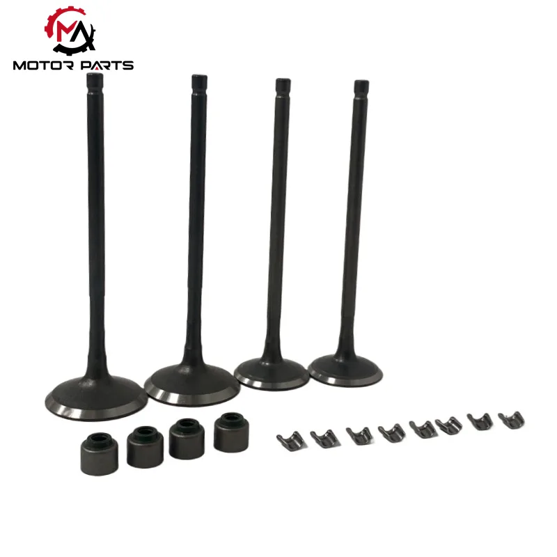 सेवन वाल्व: उच्च शक्ति वाले स्टेनलेस स्टील से बने, उत्कृष्ट संक्षारण प्रतिरोध और उच्च तापमान प्रतिरोध का संयोजन। वे इंजन के अंदर 800-1000 ℃ के उच्च तापमान वाले वातावरण का सामना कर सकते हैं और अच्छी कठोरता रखते हैं, लंबे समय तक उच्च आवृत्ति आंदोलन के कारण होने वाली विकृति या टूटने को रोकते हैं, लंबे समय तक एक सुचारू और अबाधित सेवन चैनल सुनिश्चित करते हैं।