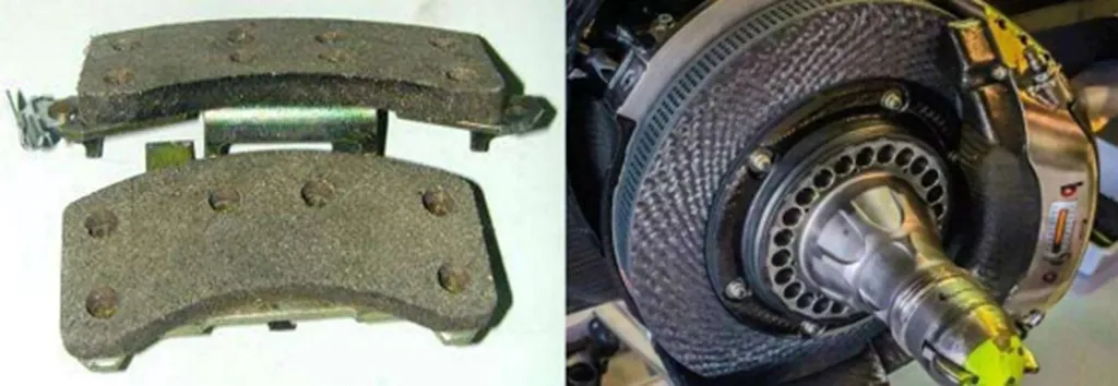 पहला एस्बेस्टस ब्रेक पैड है जिसे लंबे समय से हटा दिया गया है, और दूसरा एफ1 रेसिंग या पेशेवर आयोजनों के लिए संशोधित उच्च कार्बन फाइबर ब्रेक सिस्टम है। पहला ब्रेक नहीं लगा सकता, जबकि दूसरा इसे बर्दाश्त नहीं कर सकता।